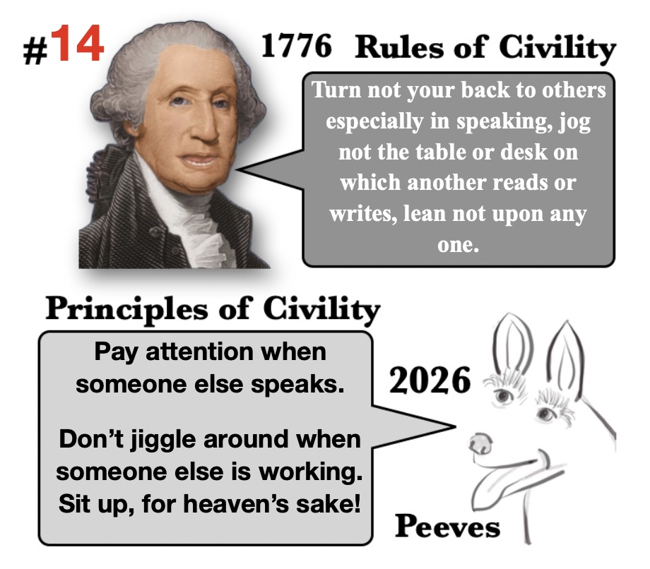 Turn not your back to others especially in speaking, jog not the table or desk on which another reads