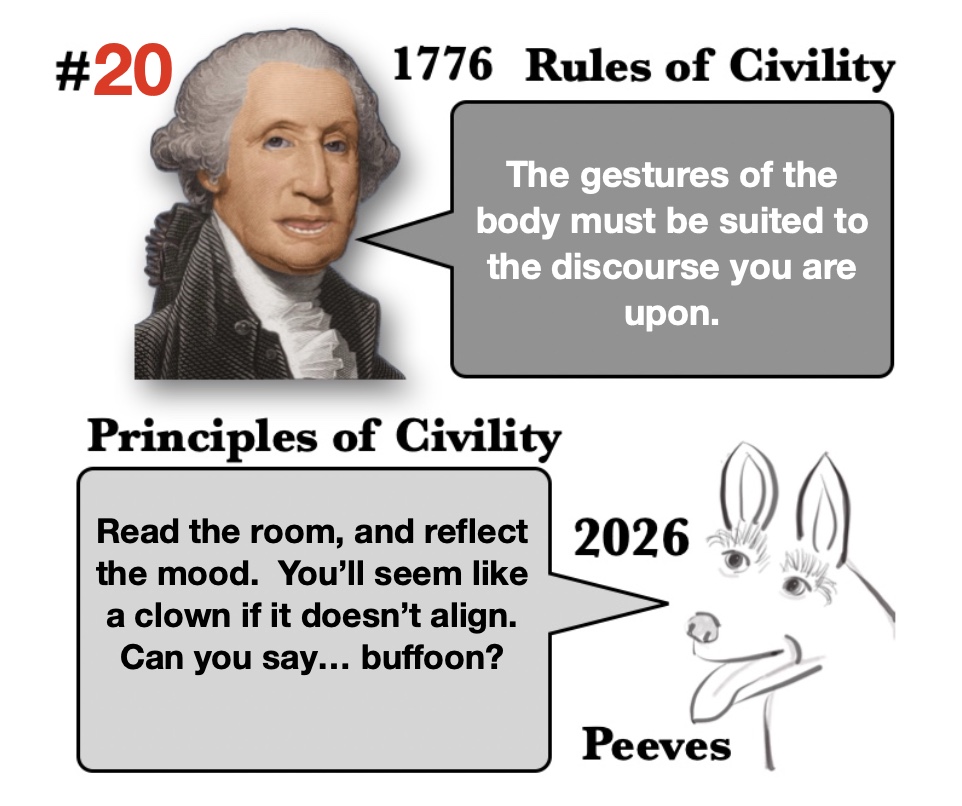 Read the room, and reflect the mood.  You’ll seem like a clown if it doesn’t align.  Can you say… buffoon?